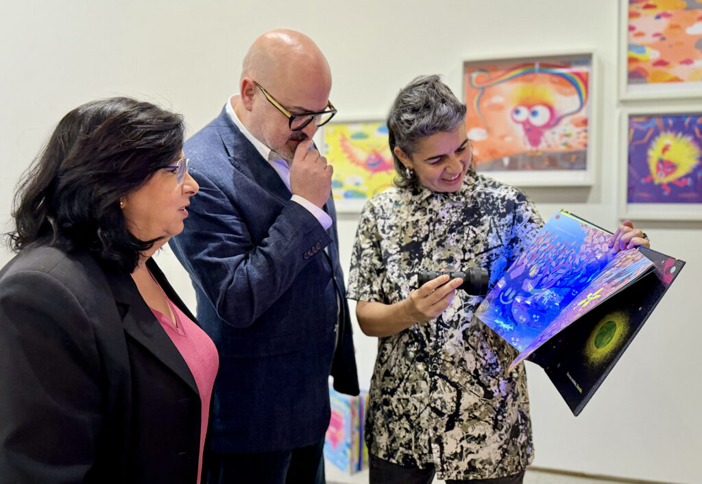 A través de su trabajo, y como podemos observar en esta exposición, la artista construye un imaginario de personajes libres, con vidas felices y destinos diversos, ampliando el alcance de su obra más allá del libro y del espacio expositivo.